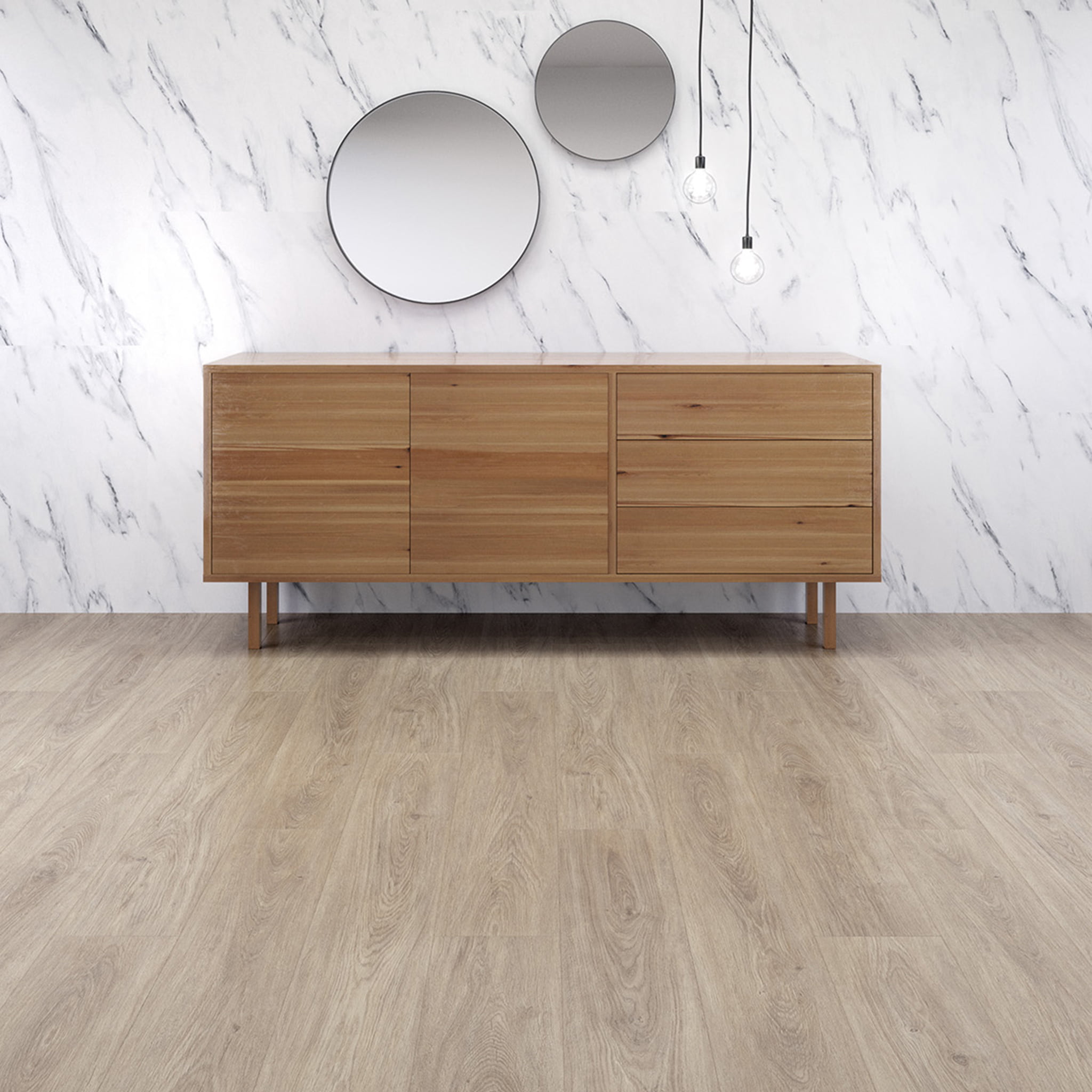Konstrukcja z drewna dębowego Monolam z mikro-fazami na obwodzie i zsynchronizowaną strukturą reliefową. Nadaje się do łazienek i kuchni. Instalacja jest bardzo prosta i praktyczna.