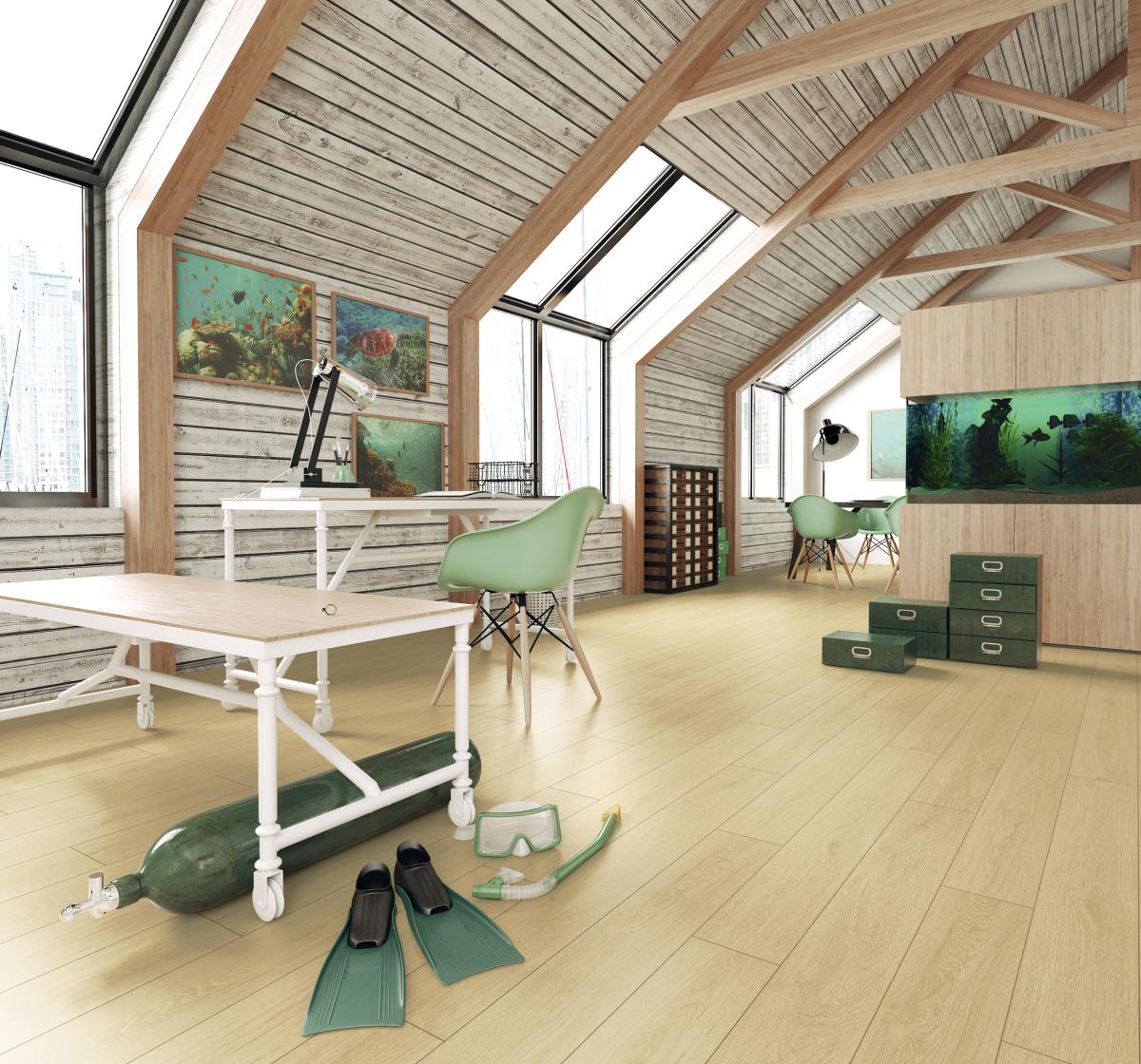 Wąska klepka kolekcji Marine daje efekt pokładu statku, przez co wnętrze staje się ciepłe i można je dowolnie stylizować.